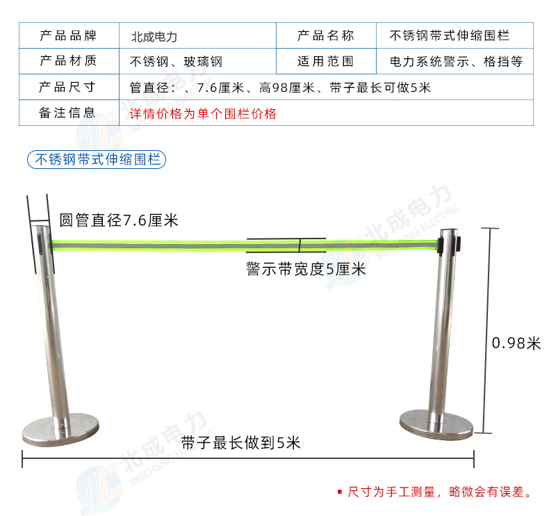 產品名稱:不銹鋼隔離帶式伸縮圍欄